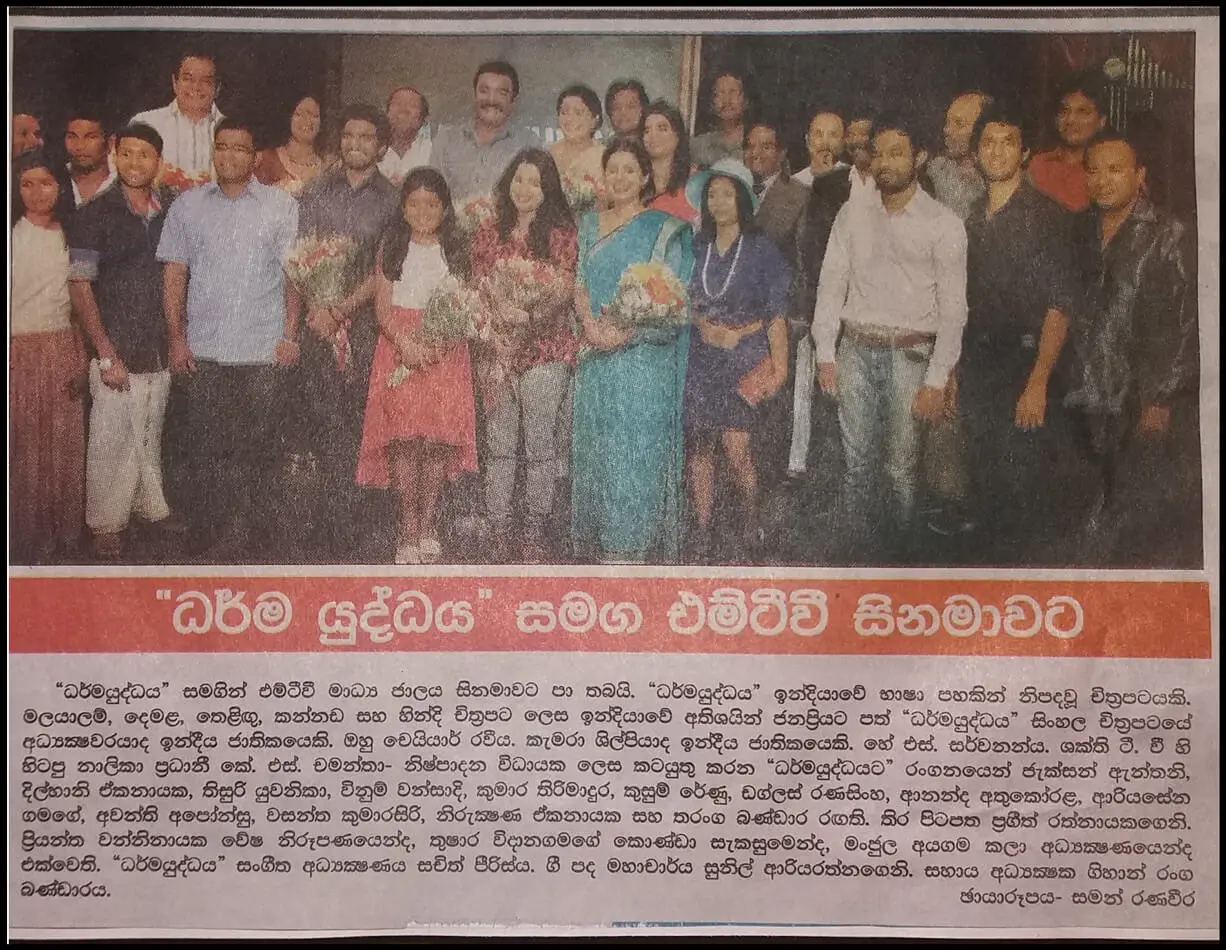 The film earned 535 Lakhs of Sri Lankan rupees from 31 days of screening. The CEL theater corporation revealed that the film has been watched by more than 235,000 viewers, by the end of first month. The film earned 955 SLR Lakhs from 45 days, a record box office in Sri Lankan cinema.After 65 days of screening, the film had been watched by over 700,000 viewers, according to CEL theaters.After 100 days of screening,the film earned 22.4 SL Crores.Dharmayuddhaya is the second highest grossing film in sri lanka.